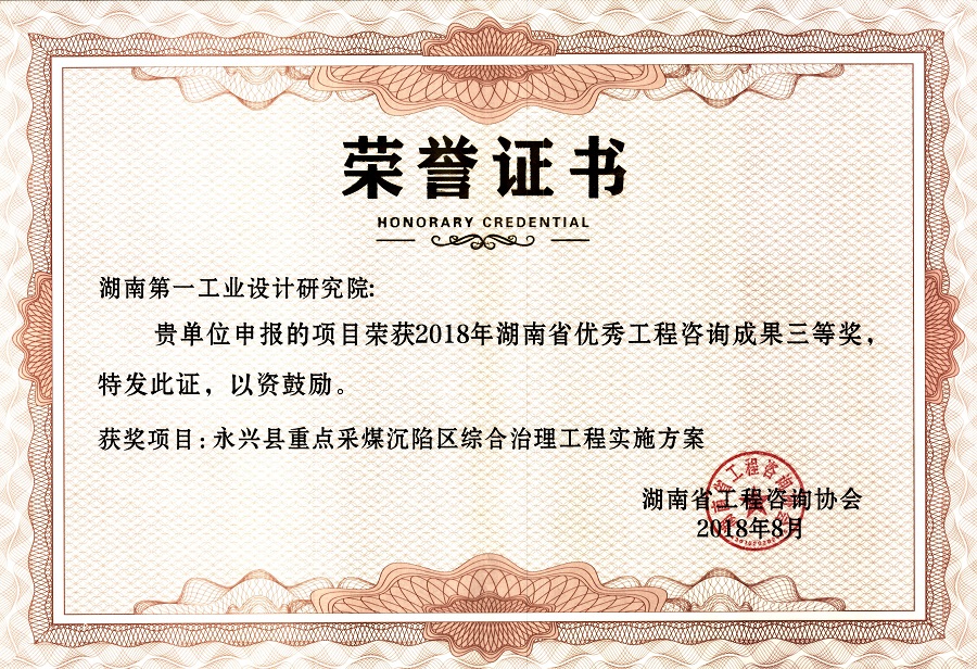 湖南省優(yōu)秀設(shè)計表揚金獎(1984)